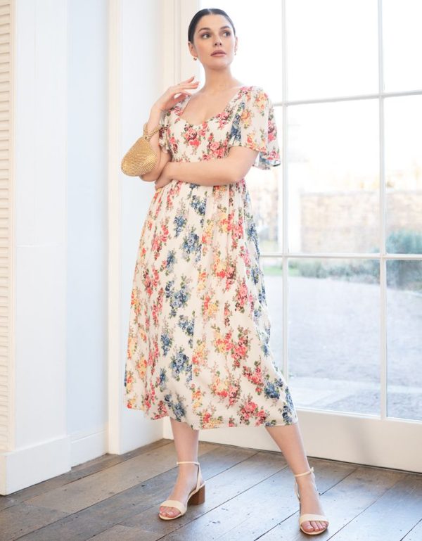 Super-feminine, soft & breathable, our Vintage Floral Maternity & Nursing Dress is perfect for weddings, baby showers & summer parties! Made in a premium cotton blend & fully lined, this style drapes & flows beautifully over your growing bump, while stretchy shirred panels at the bust & back ensure a flexible fit. Once your little one arrives, discreet nursing zippers allow quick access for breastfeeding or pumping. Feminine flutter sleeves and the stunning mix of vintage floral prints complete the look.