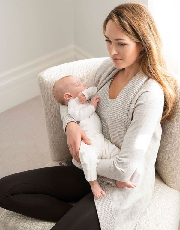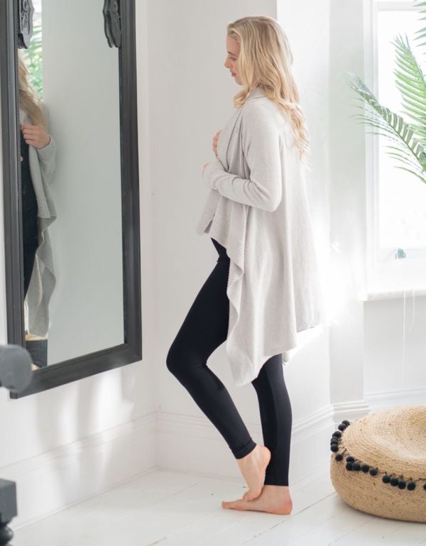 Transition the seasons in style with our ultra-soft cloud grey waterfall maternity cardigan. Finely knit in cotton and cashmere, this feminine cardigan is perfect for throwing over your shoulders on those cooler evenings. You can wear the relaxed style open, or secure it at your shoulders to create a soft cowl neckline and an asymmetrical draped look. You can even team it with your nursing clothes after baby is born & use the draped front as a handy breastfeeding cover.