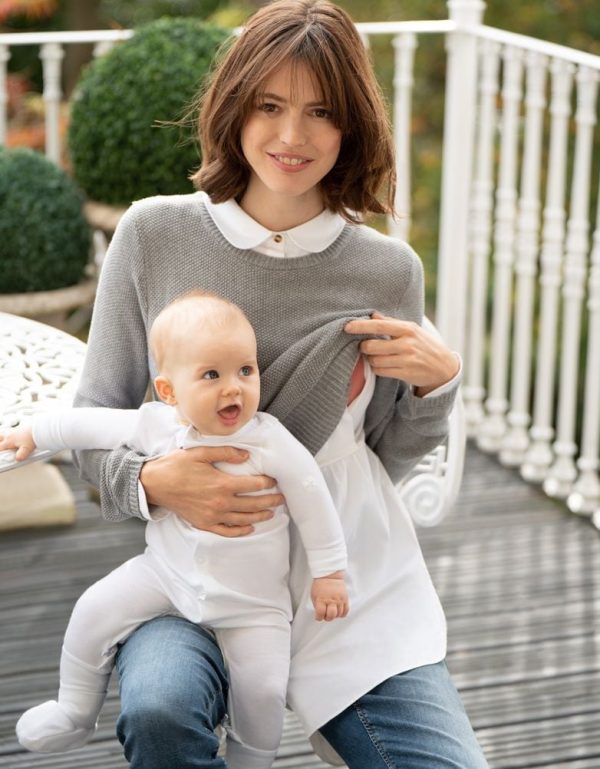 Fall in love with this season’s layered up look & opt for the Mock Shirt Maternity & Nursing Sweater! The ultimate 2 in 1 style, the soft textured sweater keeps you and your bump cozy through pregnancy, while the smart mock shirt peeks out at the cuffs, collar and hem, layering up and lengthening the style. After baby is born, this essential sweater makes a seamless transition into your nursing clothes collection with easy lift-up access for nursing. The woven and knitted parts of this stylish sweater can be easily detached and washed separately. Pair this chic knit with skinny jeans and sneakers for effortless off-duty chic.